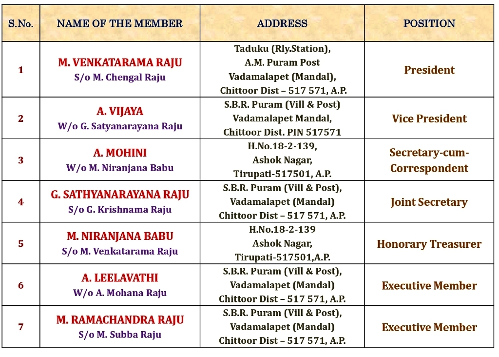 There are seven promoter members for Global Vision Educational & Welfare Society, who also formed as the First Governing Body to the society in accordance with rules and regulations under the Societies Registration Act XXXV of 2001. Brief details of the promoter members are furnished hereunder: