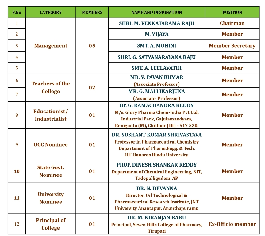- Perform such other functions and institute committees, as may be necessary and deemed fit for the proper development of the college
